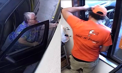 Elderly woman caught on video calling young Black restaurant worker the N-word several times before slapping him in the face because the restaurant ran out of a menu item she wanted to order